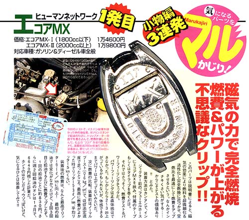 | ※ | 大型エンジンのトラック、船舶などには、エコアMX−Uを2個連結使用下さい。 |