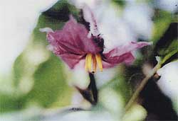 | −近年にない鮮やかな色の花− | −艶がありまっすぐに成長したナス− |