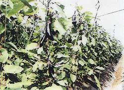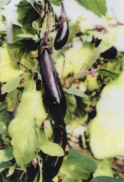 | パイププテロクター2000を設置した結果、前年比300%の収穫量を記録。 18年連作の畑で収穫・品質の低下に悩んでいたが、過去にないほど良質なナスが大量に成長した。  |  |