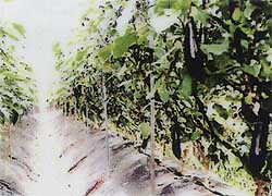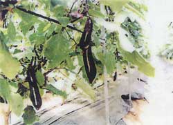 | この農家では、実に18年に渡り同じ畑でナスのハウス栽培をしていたが、年を経るごとにやせていく土地に頭を悩ませ、畑の移転まで考えていた。肥料や育成方法の改善を幾つも試みたが、なかなか思うような成果はなかった。 そこでパイププロテクター2000を取付け、潅水・散水における水質改善を実行したところ、品質そのものが良くなり、収穫量も3倍に増え、収穫期間も短縮されるなど、信じられないほどの素晴らしい結果を得ることとなった。 |